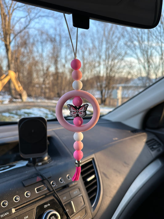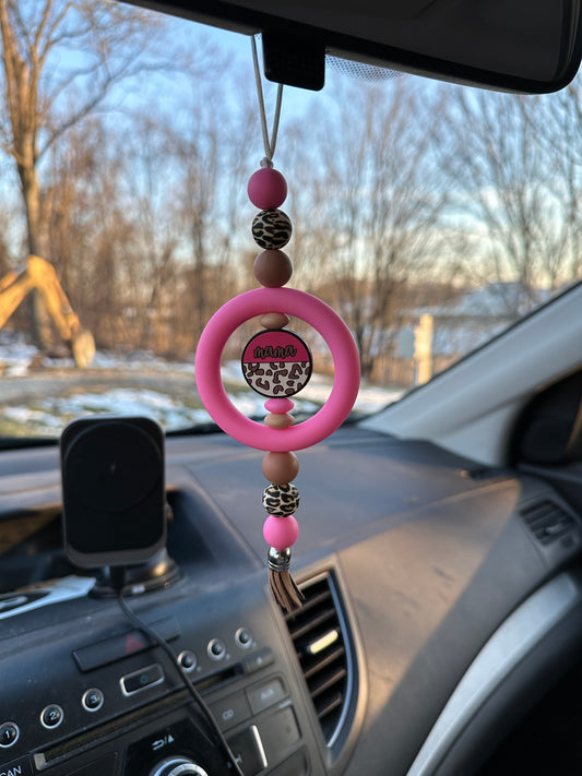 Pink Mama Leopard Print Silicone Beaded Car Charm