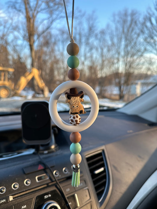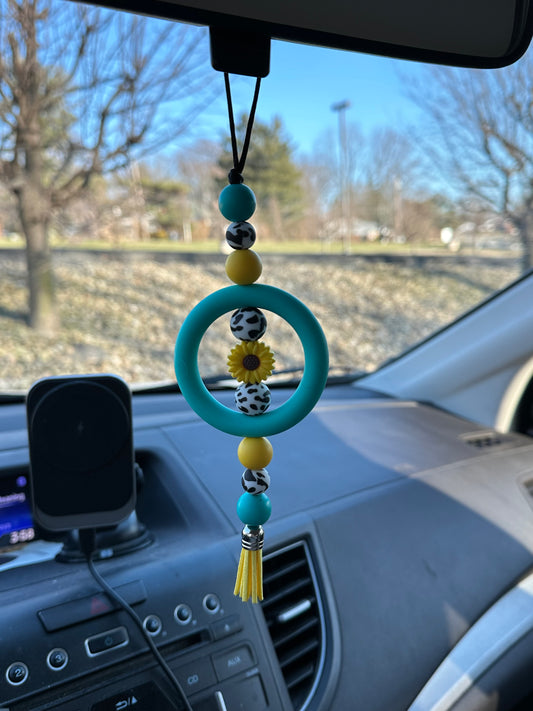 Sunflower And Cow Print Silicone Beaded Car Charm
