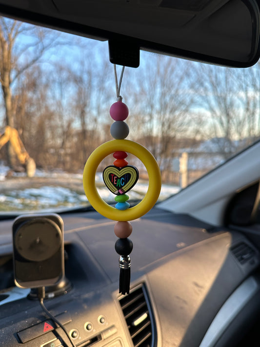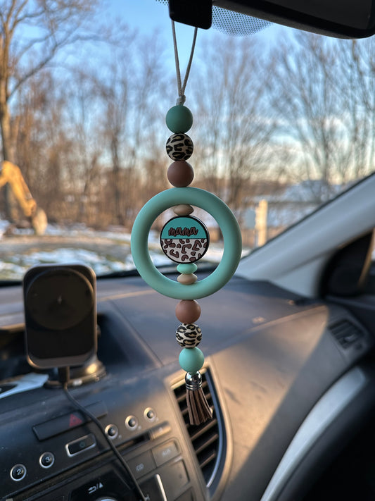 Teal Mama Leopard Print Silicone Beaded Car Charm