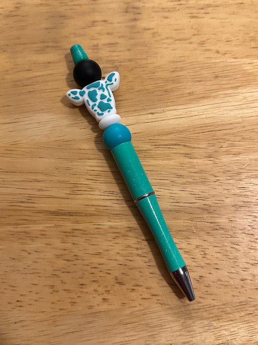 Teal Cow Teal Silicone Beaded Pen