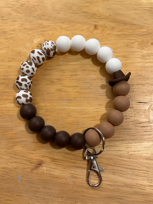 Brown Cowhide Cowboy Oversized Silicone Bead Wristlet